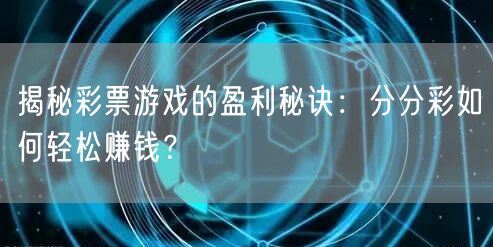 彩票游戏一直以其独特的魅力吸引着广大玩家。在众多彩票游戏中,分分彩因其玩法简单、中奖率高而备受欢迎。本文将为你揭示彩票游戏的盈利秘诀,特别是分分彩的赚钱技巧。