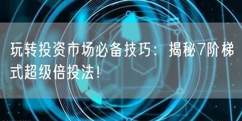 通过掌握阶梯式超级倍投法的七大技巧以及注意事项,投资者可以更好地适应投资市场的变化,提高投资成功率。当然,投资市场充满不确定性,投资者还需要根据实际情况灵活调整策略,不断学习和提升自己的能力。希望本文能为你提供有益的参考,助你在投资市场上取得成功!